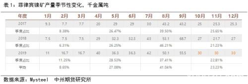 由于从菲律宾进口红土镍矿的比重将会大幅增加,国内镍矿进口的季节性特征将会更加明显,这也意味着上半年的原矿进口数量将明显低于下半年。相对于较大的需求基数,1.77万金属吨的供应增量并不会导致明显的供求失衡。在这种紧平衡状态下,供给出现了时间上的错配,使得明年上半年特别是一季度的供应仍相对紧缺;而三季度随着菲律宾矿进口数量季节性增加,以及印尼新增NPI产能释出,将使得下半年供给相对宽松。