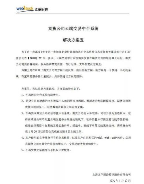 据记者了解,目前行业中仅有5-6家期货公司可以在1月20日之前完成将文华云端交易中台系统安装在服务器上,大部分期货公司则无法完成,大部分连服务器都还没买。
