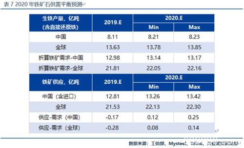 国内方面,2020年,我国钢铁行业产能减量置换将密集落地,但是产能置换项目集中12月落地,高炉生产效率或继续提高,部分非在产产能通过置换被激活,以及2019年投产产能逐步达产,预计我国高炉有效产能不减反增,全年增加1500万吨左右。同时2020年废钢供需仍偏紧,短流程钢厂停复产将成为平衡国内钢材供需的重要手段,为高炉盈利提供安全垫。并且因房地产韧性,以及基建投资受政策支持,对2020年上半年终端需求预期好于下半年,有利于提高春节后高炉生产的积极性。我们估计2020年生铁产量或增加约1000万吨,同比增长1.23%。则2020年国内铁矿石需求或增长约1600万吨。