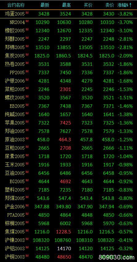 金融界网站1月22日讯 国内期货市场收盘,商品期货大面积飘绿,能源化工品跌幅居前,鸡蛋、20号胶跌逾3%,甲醇、橡胶跌超2%,PP、白银、菜粕、棉花等跌超1%;棕榈油、红枣、燃油等小幅上涨。