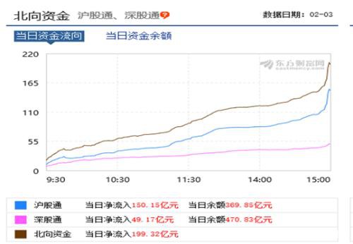 市场整理北向资金流入199亿,其中沪股通流入150亿,深股通流入49亿。