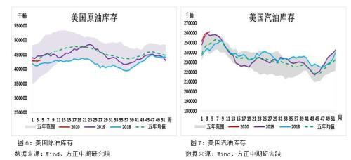 炼厂进入春季检修阶段,市场进入累库阶段。年初以来,受春检影响,炼厂CDU检修量开始不断上升,而炼厂开工率出现明显下滑,原油加工需求减少,库存开始累积。截止2020年1月24日当周,美国炼油厂开工率87.2%,比前一周下降3.3个百分点;美国炼厂加工总量平均每天1592.4万桶,比前一周减少93.3万桶;美国原油库存量4.31654亿桶,比前一周增长355万桶,汽油增长120万桶;馏分油下降129万桶。预计炼厂检修及原油库存的累积将持续至一季度末。