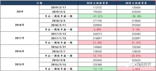 需求端,从天下粮仓统计的国内30家和38家油厂的豆粕提货量来看,下图为过去5年来春节前一周和后一周的提货量对比,可以看出,春节过后一周豆粕提货量将恢复至年前一周偏高的水平,虽然较春节备货期间的水平偏低,但说明春节后饲企补库的需求还是比较强劲的。特别是在今年交通管制、封存封路的特殊情况下,年前饲企的备货量难以支撑疫情期的需求。湖北部分养鸡场就面临着口粮不够,鸡苗被迫填埋的窘境,为此中储粮紧急向湖北地区调拨豆粕,说明养殖厂对于豆粕的需求比较紧迫,疫情过后豆粕价格有望企稳回升。
