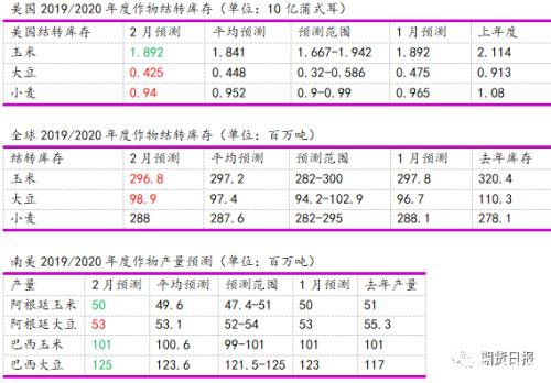 北京时间2020年2月12日凌晨,美国农业部公布2月份美国和全球谷物和油籽供需报告。要点如下:
