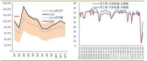 图:重卡1月销量超预期 图:轮胎开工率逐渐恢复