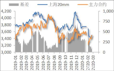 与期货价格跳空反弹不同,螺纹钢现货价格则呈现相对较弱态势。节前(1月23日)上海20mm螺纹钢市场价格3750元,春节后连续下滑至低点3430元,近两日随着成交转暖回升至3500元,但涨幅与期货价格相差较多,基差收缩明显。