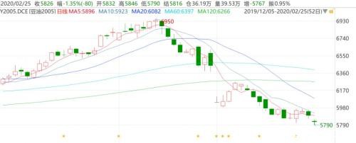 来看下本周这前2个交易日,因新冠肺炎疫情在日本、韩国、意大利等国肆虐爆发,投资者对此忧虑加深,再加上市场预计马来西亚棕榈油产量将增加,而出口又将因新冠肺炎疫情扩散而下滑,马棕油下跌约3%,从而带动了今日连盘棕油的大跌。而豆油也是逃脱不了下跌的噩梦,昨日外盘遭遇黑色星期一,资本避险离场也拖累了大宗商品,CBOT的5月豆油合约收跌1.14美金,跌幅3.61%。