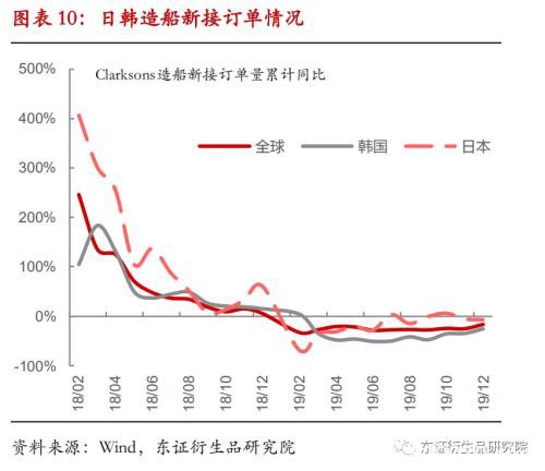同时,疫情对于不同制造业板块需求的影响存在一定的分化,与消费类相关的制造行业可能受到更大的冲击。由于韩国和日本本国汽车保有量已经处于很高的水平,汽车出口在本国产量中的比重分别位于60%以上和50%左右的高位,国内需求下降的影响可能会弱于内销比例较高的国家。但如果疫情造成日韩国内的汽车消费出现类似于中国的阶段性冻结,对于市场的冲击仍将不容小觑。因此,更偏消费需求的制造业会受到疫情更大的冲击。而对于外需占比更大的制造业,例如造船行业,如果疫情没有爆发到影响船舶需求,需求受到的冲击则会相对偏低。