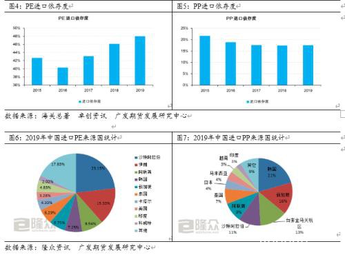 国外疫情方面,根据新闻报道,当前中国境外疫情较严重的国家主要是日本、韩国、伊朗和意大利,我们主要分析日本、韩国和伊朗对我国聚烯烃供应的潜在影响。我们认为这些国家的疫情恶化对聚烯烃的短期影响可能更多是体现在的供应端的变化上,即疫情国家采取封锁措施或者他国对疫情国家人员或货物采取禁入措施等,因此用我国聚烯烃的进口依存度和各国货源的比例来做个简单的定性分析。