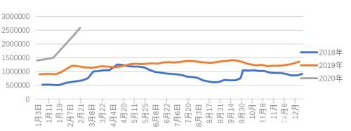 尤其PTA库存水平大幅高于18年、19年同期水平,涤纶长丝库存天数也是到达14年一、二季度以来最高水平。进一步向下游延伸,盛泽地区坯布库存今年春节后终端可能同样面临库存偏高的问题,对比18年、19年同期尤为明显。考虑到聚酯产能近年来10%左右的年均增速,后市盛泽坯布库存去化进程仍可能承受阻力。