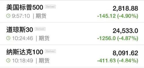 欧股、美股期货继续大跌,美股期货暴跌逾4%,盘中一度触发熔断交易。