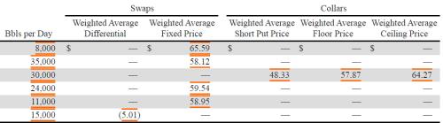 表1:Noble Energy, Inc.2019年末原油衍生品套期保值情况