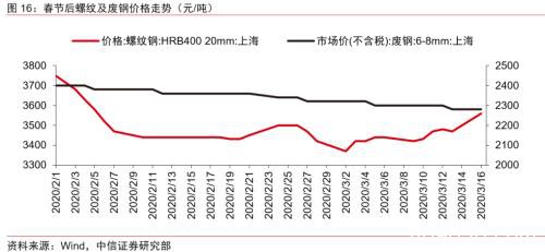 在需求恢复带动钢价走强的基础上,后续供应端将有持续恢复的可能。产量回升对应的是利润的走阔,而随着近两周需求的持续恢复,上海螺纹价格近两周已经从3月初的低点3370元/吨上涨到目前的3560元/吨,在原料端下行空间不大的预判下,钢价上行将带动产量持续上行。若目前这一价格水平能够维持,对应电炉方面也将会有边际产量释放,从而带来产量明显恢复。