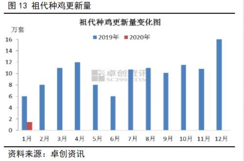 3. 目前现货价格成本线附近波动,部分地区价格已经跌破成本线,但在前两年长时间盈利的影响下,当前市场未有明显反应,但不排除后期低位震荡导致的市场出清。另外,2019年在淘鸡高价下,出现了淘汰直接上青年鸡的情况,随着2019年底淘鸡价格回落,这种情况减少,目前补栏情绪仍较高,但在当前淘鸡价格下,超淘现象很难出现。