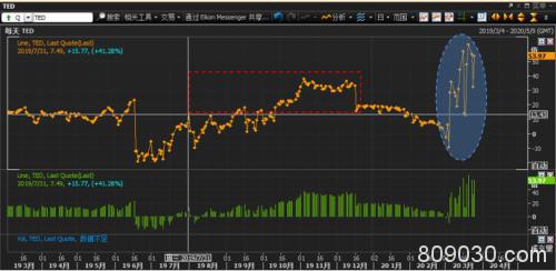 图1 TED利差在上一轮降息后反而更加紧张(方框阴影部分)、而当前的情况也非常类似(圆圈标记部分);当前紧张的流动性有逐渐缓解的迹象