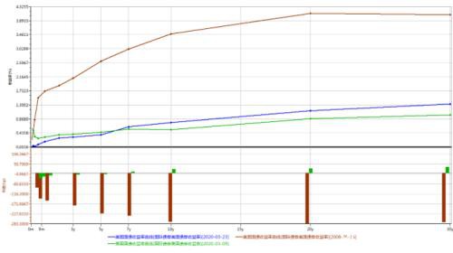 图5 中国国债的期限结构相对更好当前-蓝色比08年危机-褐色绝对水平更低,但扁平化程度基本一致,且已经比最差的时候3.10号-绿色利率水平有所恢复