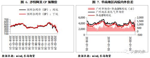 在国际市场方面,在此前的OPEC会议上,俄罗斯拒绝了沙特等国深化减产的提议,超出市场预期。而后沙特宣布在4月的减产到期后,即将大力增产,同时压低原油出口售价,掀起“价格战”,油市雪上加霜。油价的暴跌也带动了国际丙烷的迅速下行。沙特阿美CP丙烷预期价由2月底的420元/吨下跌到了3月26日的200元/吨,价格一个月内腰斩有余。