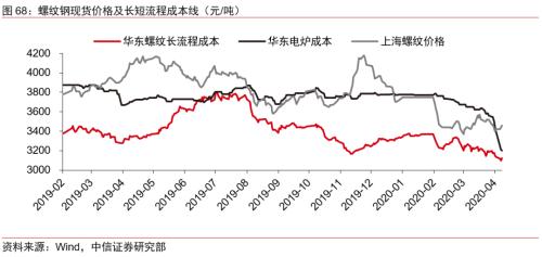 对于短流程的电炉而言,最直接的影响就是利润开始释放。根据模型测算,春节以来直到3月中旬,短流程基本都处于亏损状态,而随着3月中下旬开始的需求快速恢复,电炉谷电利润开始释放,从日耗的数据以及电炉开工率的数据可以得到很好的验证。随着废钢价格大幅下行,短流程平电利润在4月已经由负转正,并且目前与长流程吨毛利相差已经小于100元。从真实情况来看,由于废钢目前生产上都还在使用前期的高价库存废钢,实际利润可能达不到模型测算的水平,但可以预见的是,随着需求复苏以及废钢低价带来的利润空间,短流程产量将迎来快速爬坡期。