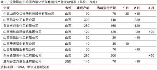 多因素压制氧化铝价格,料成本下行但空间有限。受国内疫情影响,1-2月份氧化铝减产产能超400万吨,产量减少和物流影响支撑价格上行。预计二季度价格走低,1)海外疫情接力冲击电解铝价格,向上游索利压制氧化铝价格;2)油价下跌导致国际海运费下降和海外氧化铝价格超跌,氧化铝进口盈利增加,进口窗口打开;3)随着国内下游消费预期回暖,氧化铝减产产能有望逐渐恢复,过剩格局并未改变。