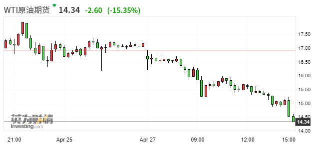 WTI原油期货跌幅扩大至15% 报14.4美元/桶 FS荟 • 2020年4月26日 20:05 • 期货 • 阅读 718 金融界网站4月27日讯 WTI原油期货跌幅扩大至15%,报14.4美元/桶。 文章作者:FS荟,如若转载,请注明出处:http://www.809030.com/futures/82834.html