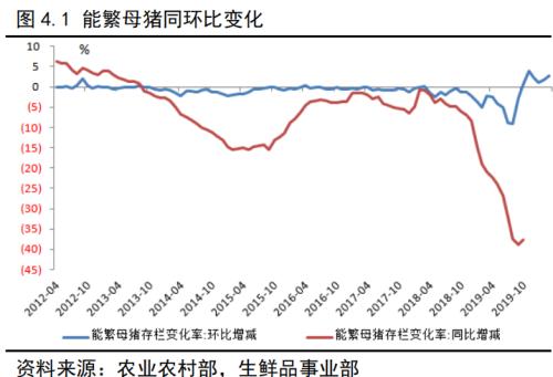 农业农村部数据显示2020年3月能繁母猪存栏环比增长2.8%,同比仍有20%的跌幅,能繁母猪存栏已经自2019年10月开始连续6个月增长,但受疫情等因素影响,存栏回升速度较为缓慢。