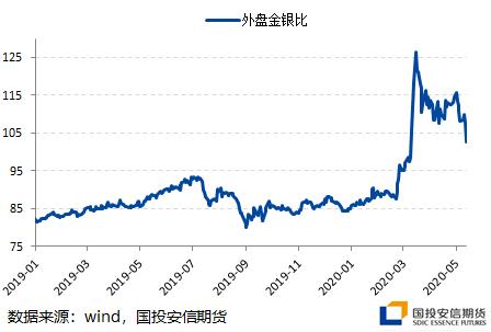 今年以来白银充分体现“妖”的本色,暴涨暴跌叹为观止,目前白银已收复三月流动性危机以来的全部跌幅,金银比从接近130高位回落至100以下。白银的商品属性使得其近期跟随原油等大宗商品走势更强,但疫情之下工业需求受到打击难以忽视,白银消费预期最差的时期或者已经过去,但是后续消费并不乐观。海外疫情远没有到受控的阶段,白银虽然比黄金具备更大弹性,但金银比短期能否向均值继续回归存在巨大不确定性。在白银大幅上涨之际建议谨慎参与金银比交易,做空金银比应严格设置止损。