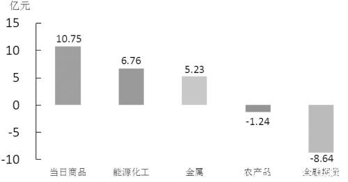 商品期货成交额大幅增加,期货市场成交活跃度上升。资金流出金属和农产品板块,流入能化板块,商品期货资金总计流出金额约为1.91亿元。资金流入金融期货板块,流入金额约为13.93亿元,金融期货成交活跃度降低。从盘面上看,农产品板块上涨为主,豆二收涨3.09%;黑色系铁矿石偏强,上涨5.41%;能化板块原油上涨5.02%,甲醇下跌2.56%;贵金属白银涨停;股指期货IF与IH上涨、IC下跌。