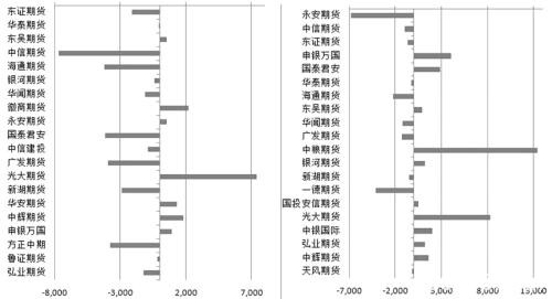 相反,位居多头排行榜首的东证期货席位,当日在减持2090张多单的同时仅减持688张空单,净空单增加至3820张;中信期货席位在大幅减持7703张多单的同时仅减持996张空单,净空单增加至54160张;海通期货席位在减持4207张多单的同时仅减持2196张空单,净多单减少至2282张;广发期货席位、新湖期货席位当日在多头持仓上的减持幅度亦大于在空头持仓上的减持幅度。东吴期货席位、光大期货席位和申银万国席位当日虽做出多、空同增操作,但在空头持仓上的增持幅度大于在多头持仓上的增持幅度。以上数据显示,这部分席位对后市更倾向于悲观。