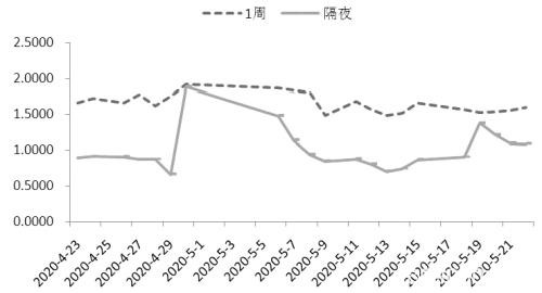 公开市场操作方面,央行继续暂停逆回购操作。目前短期Shibor仍然高于“五一”假期前水平,中远期Shibor未出现明显变化。货币政策传导相对顺畅,M2同比连续两个月维持两位数增长。5月份,央行并未进一步下调MLF利率,LPR报价也保持不变。由于全球疫情和经贸形势不确定性很大,今年政府工作报告没有提出全年经济增速具体目标,财政政策的基调为积极的财政政策要更加积极有为,货币政策的基调为稳健的货币政策要更加灵活适度。国内疫情控制效果较好,经济恢复相对较快,由于前期的货币政策已经提供了足够的流动性,经济恢复的需求引发信贷需求增加,短期利率出现回暖迹象。 (作者单位:国信期货)
