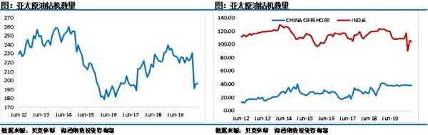 亚太地区钻机开机数量同样出现了下滑趋势,但相对而言下滑的幅度不如中东地区,甚至也没有超过2016年市场底部之时。分国家来看,两个主要的产油国印度和中国钻机开机数量下滑都不是很明显,印度小幅下滑,中国维持稳定,油价的突然性暴跌对于亚太地区影响相对较小。