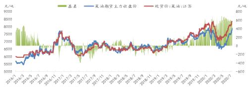 菜油期货09合约深度贴水基准交割地现货对期价也有提振。2020年初以来,菜油期货主力持续大幅贴水基准交割地现货,以目前菜油期现价差来看,主力09合约贴水江苏地区四级菜油现货500元/吨左右、对近月期价也有提振。