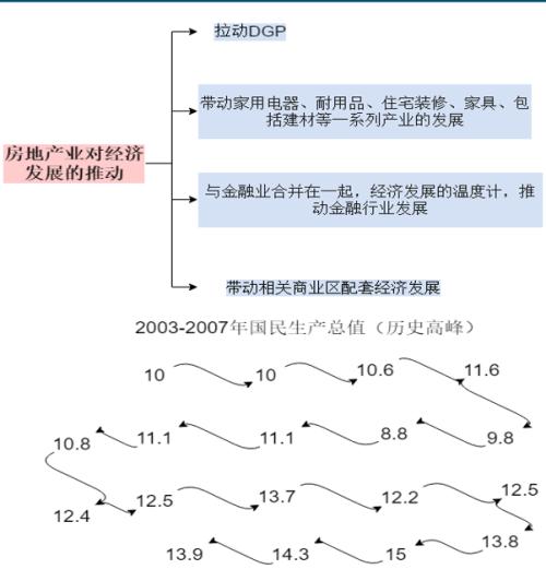 2003年以来,我国宏观经济正处于经济周期的上升阶段,房地产也处于周期中的繁荣阶段。房地产经济的发展涉及到多个环节,其在发展的过程中也会带动一大批的与房地产经济相关的经济产业的快速发展。