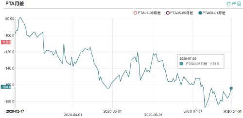 PTA 9-1月差从0720开始有一波快速反弹,-185元/吨涨至-160元/吨,主要是因为TA09上空头太过拥挤,100万手持仓,只有20万手仓单。
