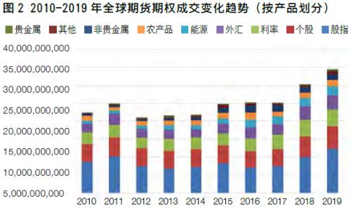 2019年年末,全球期货期权的总持仓达到了创纪录的9.00亿手,较2018年底的8.28亿手历史峰值增长了8.8%。