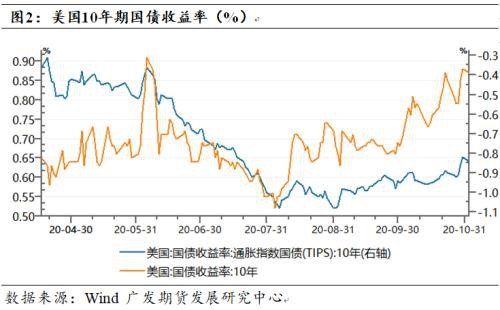 尽管目前美国疫情进一步恶化,但由于美国并未针对疫情采取强硬的封锁措施,因此,整体经济部门,尤其是制造业部门并未受到此次疫情的强烈冲击。在制造业恢复的情况下,美国10年期国债收益率稳步回升,并带动美国实际收益率中枢逐步上移,进而对金价走强形成压制。
