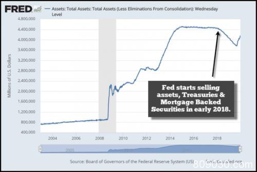 美联储在2018年初开始通过抛售美国国债和抵押贷款支持证券(MBS)缩减资产负债表。