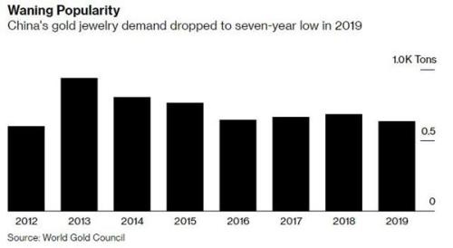 随着冠状病毒危机造成的经济损失扩大,今年全球最大的黄金消费国中国黄金首饰的销量将大幅下降。