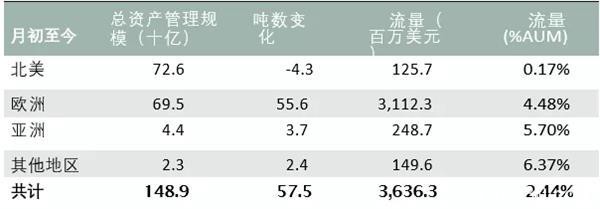 投资者似乎也同意这一点。尽管本周金价回落,在美国和欧洲上市的多数黄金ETF也遭遇抛售,但全球黄金ETF流量仍为正。亚洲本周甚至流入了黄金ETF.3月份,投资者增持36亿美元黄金ETF,年初至今全球共流入115亿美元 (表2)。