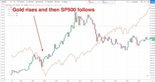 从2008年金融危机时市场的走势来看,金价领先于标普500指数,后者跟随这前者开始回升。