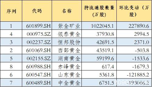 金融机构重仓黄金股一览: