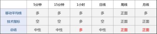 多周期技术信号显示日内市场情绪看涨:短线看涨(5分钟,15分钟,1小时),中线中性(日线),长线看涨(周线,月线)。