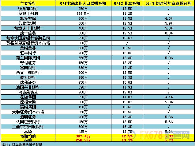 下图为各家投行对于非农数据的具体预测