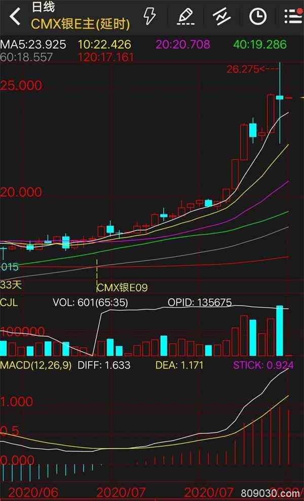 周二亚市盘中,COMEX黄金期货主力合约一度升至1974.7美元/盎司;COMEX白银期货主力合约一度上涨7%,最高触及26.275美元/盎司。但好景不长,随后金银冲高回落,涨幅很快被悉数回吐。有分析认为,金银近期涨幅过快,且势头很猛,多头的获利了结似乎成为此次金银高位跳水的重要原因。