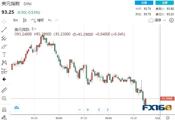 (美元5分钟走势图,来源:FX168)
