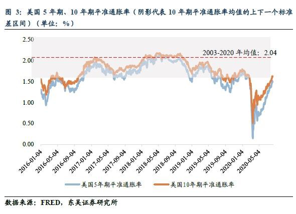 从这两个维度来看,我们都可以认为这意味着:美国通胀预期已经回升至历史常态区域的下限。关于为何把美国10年期平准通胀率理解为美国通胀预期的替代指标,我们将在下边进行详细解读。