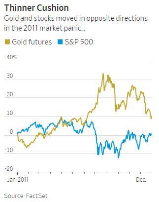 对于投资者而言,上月美股等风险资产下跌时,黄金一直是一种糟糕的对冲避险工具。在当时,黄金如同今年3月一样,几乎与股市一同下跌,这令不少交易员感到迷茫。对此,华尔街日报专栏作家James Mackintosh有着自己独到的看法。