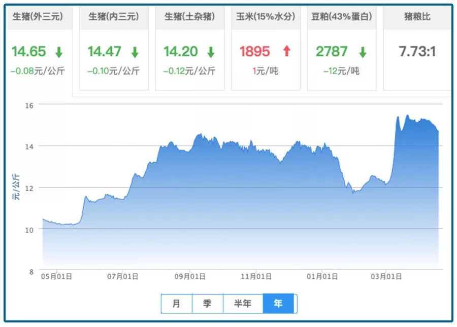 语不惊人死不休——下半年猪肉价格或同比涨超70%,猪肉价接近历史新高。这结论并非空穴来风,受非洲猪瘟等事件影响,能繁殖母猪存栏同比下降21.0%,降幅创近10年来最大值,产能调减带来一季度猪肉价格止跌反弹。
