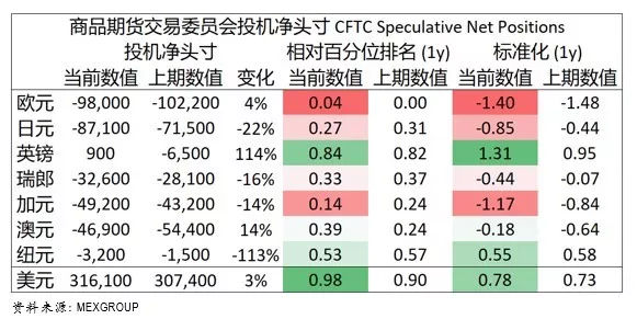 - 新一期CFTC数据显示,欧元、加元及日元的空头处在极值,我们认为将续有资金流入,并维持看好欧元、加元及日元。