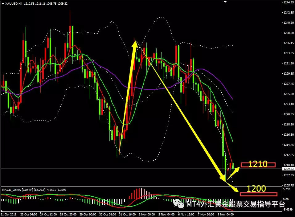 整体来说,技术面已经再次开始逐步看空,前期支撑点位均已经转化为阻力。在黄金收复日线布林通道中轨1220之前,短线看上可能会先走回调路线,短线我们先保持看空关注下方支撑。所以本周黄金我们先保持看回调一波1202-1205位置,注意支撑力度,黄金确认好下方的支撑,后市才会更好的拉升,今日操作上建议高估低渣即可!