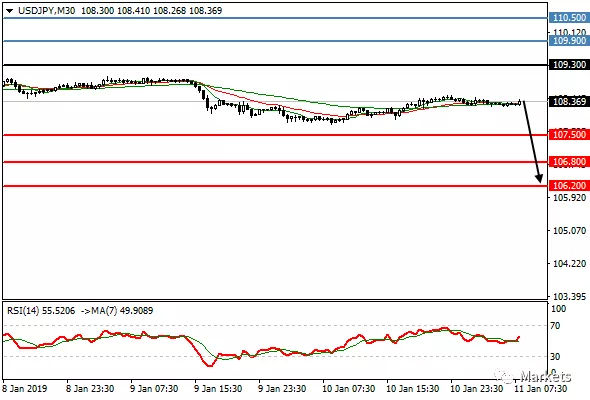 Technical View: 看跌需突破 109.3. 目标 107.5. 相反,突破 上方 109.3, 将打开 109.9.